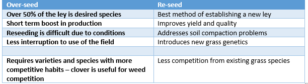 The grass reseed might not have time to fully establish before needing to turn livestock out onto it. This risk can be reduced with overseeding the existing ley to boost production.